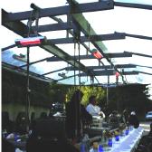 Das Gastro-Heizstrahler Komplettset. Schalten und Dimmen Sie Licht und Wärme mit Bluetooth-Dimmern per I-Phone oder Fernbedienung.