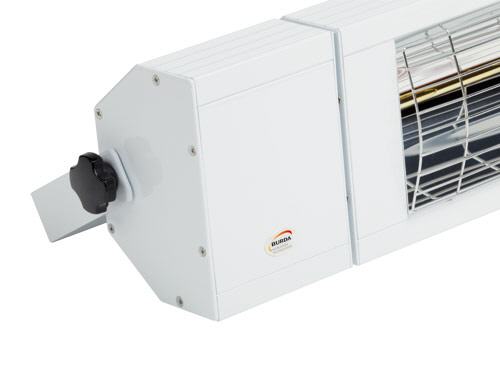 Burda Gastro-SMART Multi IP24. Mit zwei Heizröhren je 1500 Watt bietet der Doppelstrahler in Weiss volle Heizleistung in einem Bereich von etwa 24-26 qm.