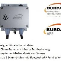 Ausgestattet mit Bluetooth Dimmer für die kabellose Steuerung von Heizstrahlern. Inklusive Fernbedienung und kostenloser BURDA APP für iOS und Android Geräte.