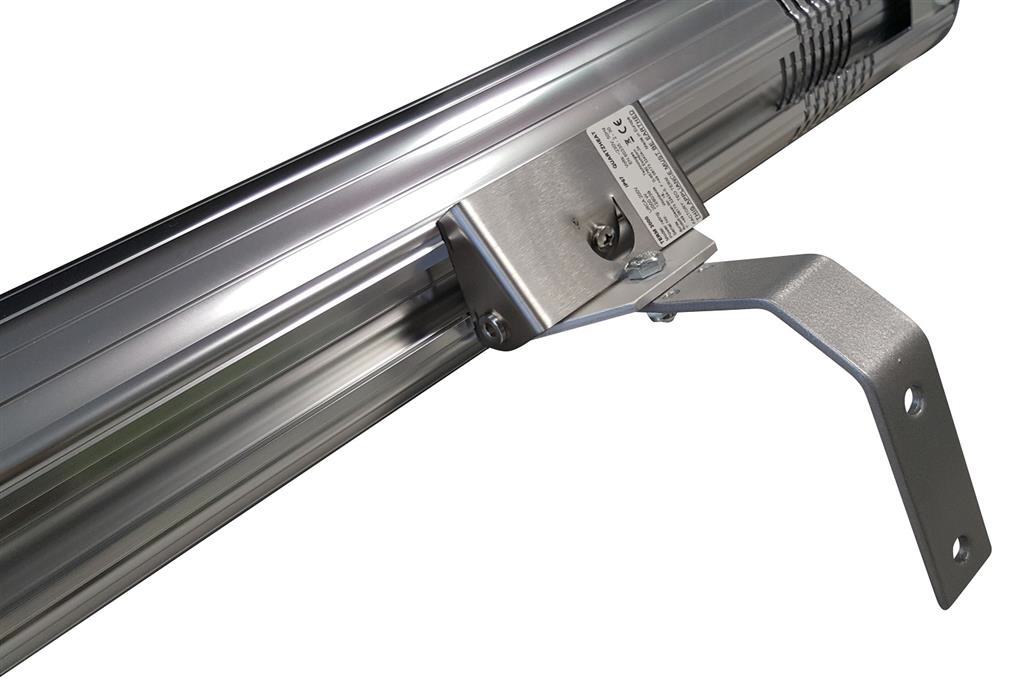 Der leistungsstarke Infrarotheizstrahler mit Spritzwasserschutz IP44 in der sehr hochwertigen Ausführung Aluminium poliert ist mit einer Hochleistungsröhre ausgestattet, die sich sowohl für die Terrasse, für Schirm-Installationen sowie auch zur Flächenwärme von Gewerbe und Industrie eignet.